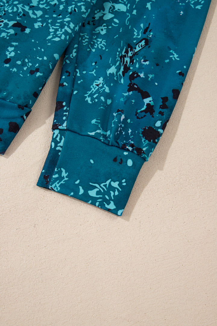 Blue Tie Dye Cow Color Block Pullover Sweatshirt
