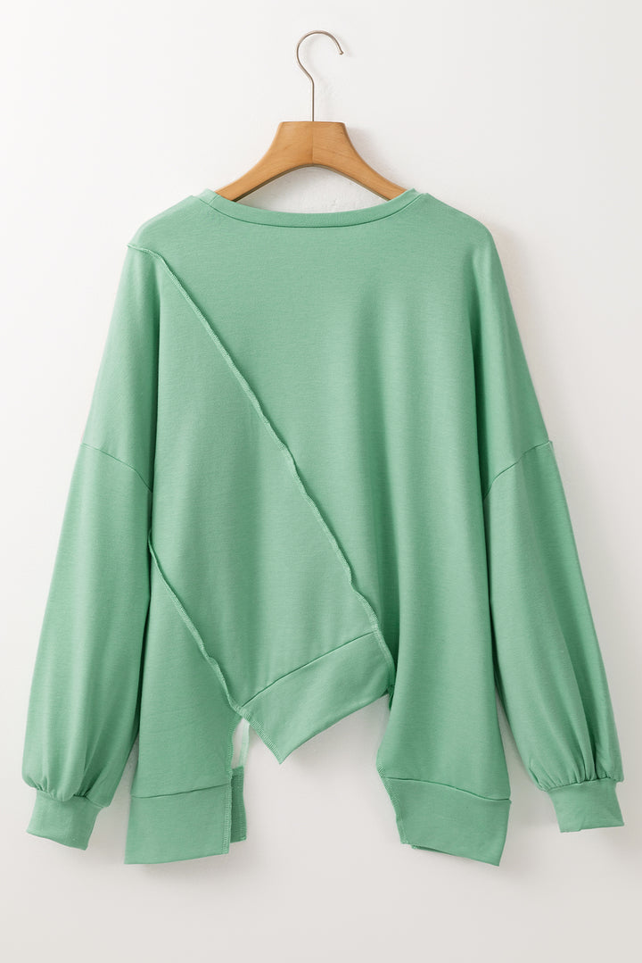Colorblock Stitching Irregular Hem Long Sleeve Top