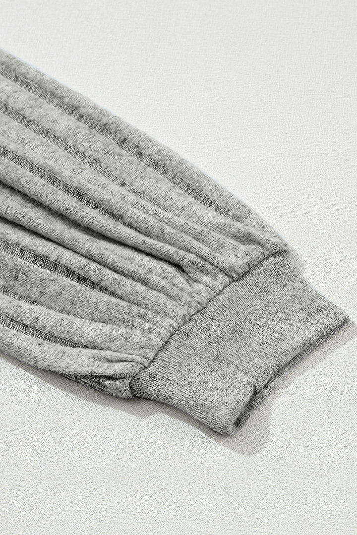Light Grey Buttoned V Neck Ribbed Puff Sleeve Top