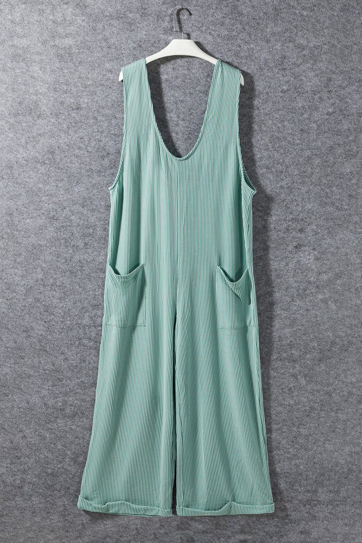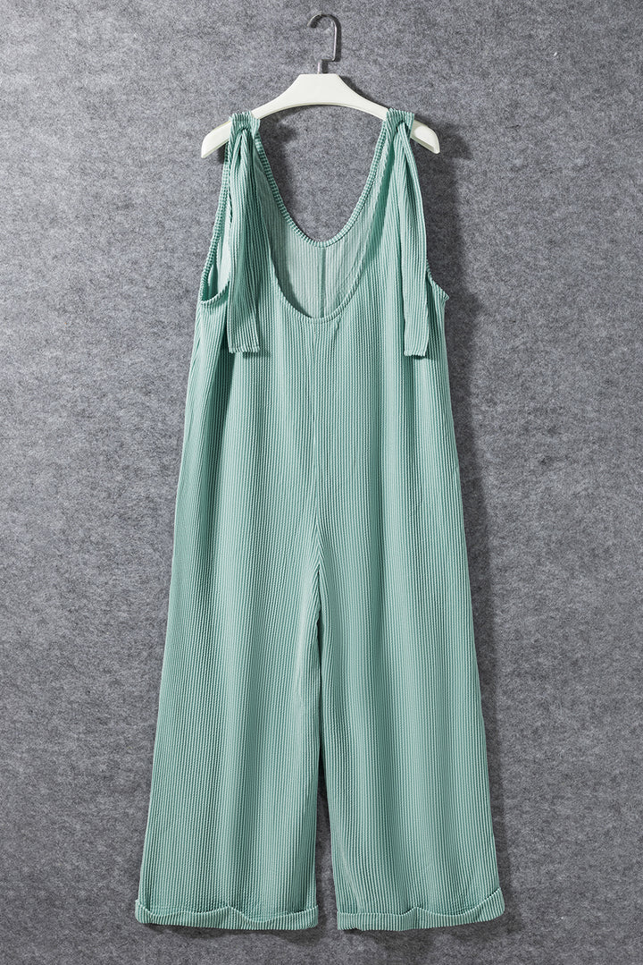 Moonlight Jade Corded Tie Straps V Neck Wide Leg Jumpsuit