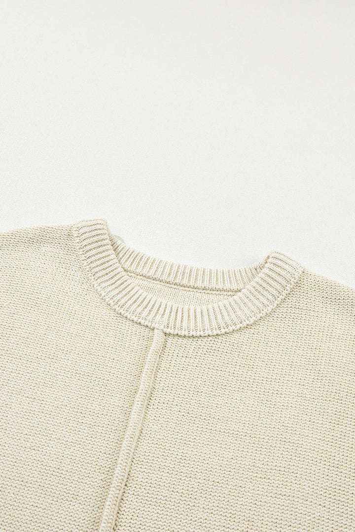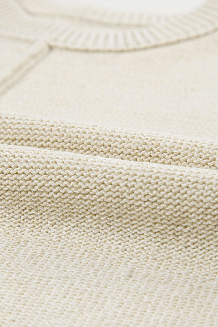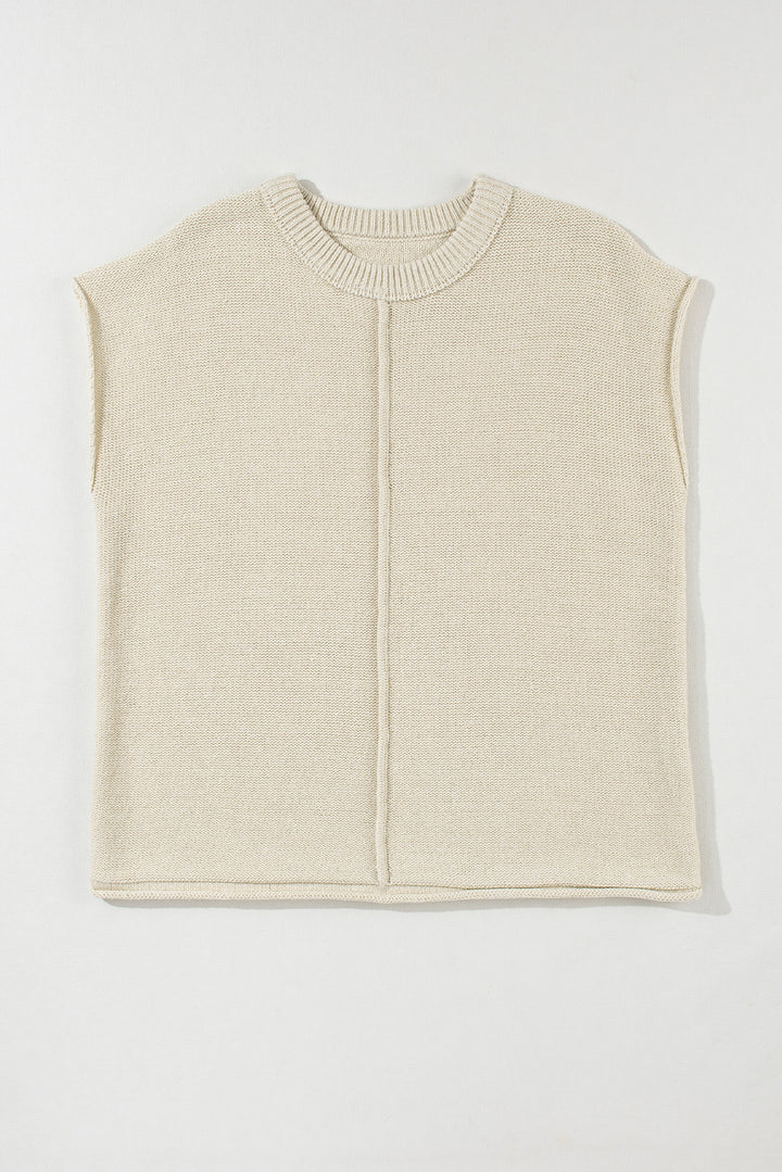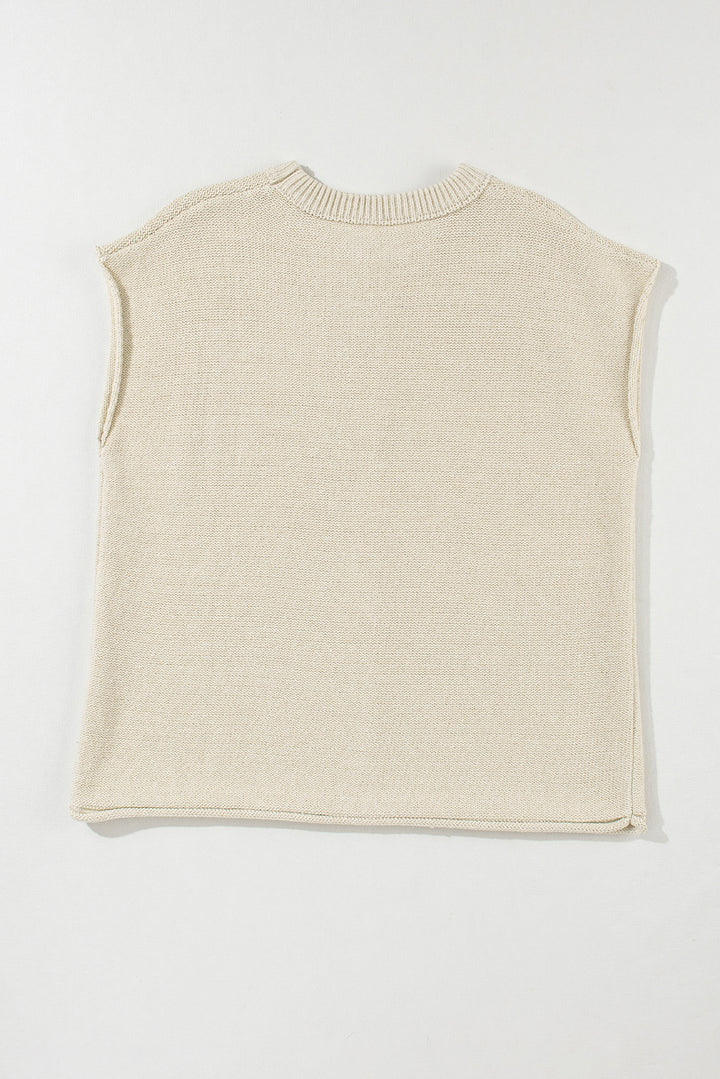 Oatmeal Solid Color Cap Sleeve Knitted Sweater