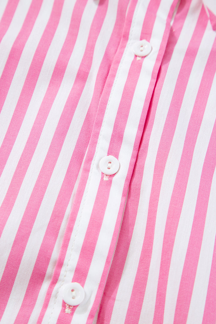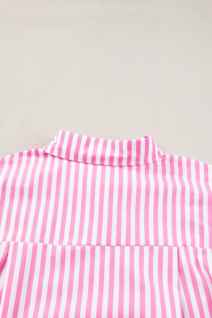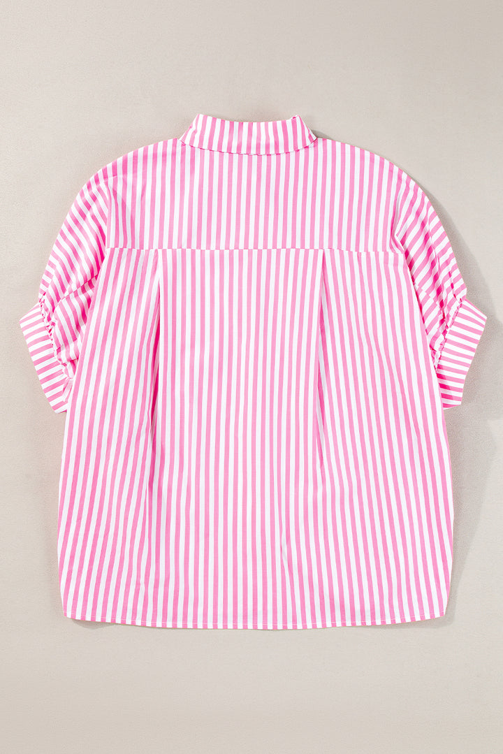 Pink Stripe Dolman Sleeve Oversize Shirt