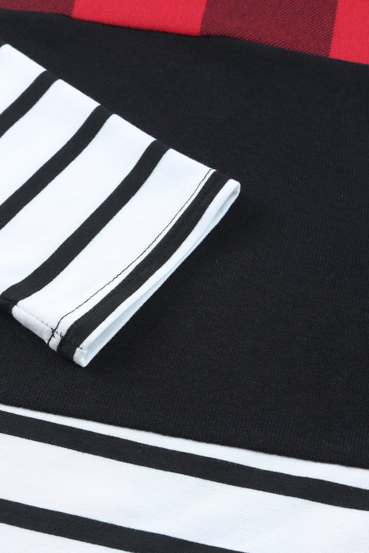 Plaid Print Leopard Splicing Striped Color Block Long Sleeve Top